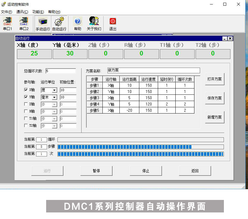 ◆用户可以设置多个自动运行方案,控制一台或多台位移台以不同的速度,位移量,延时量自动重复完成设定的动作