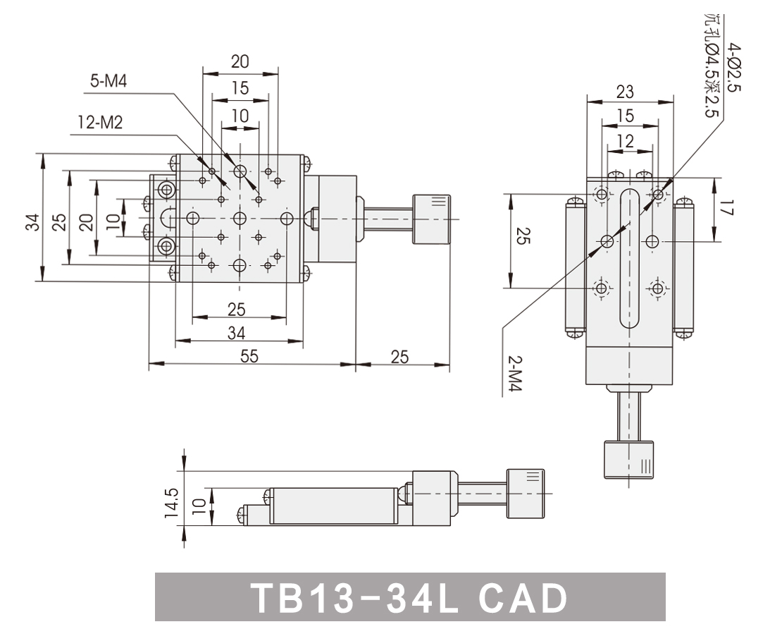 CPTB线性滚珠精密手动平移台系列TB13-34L